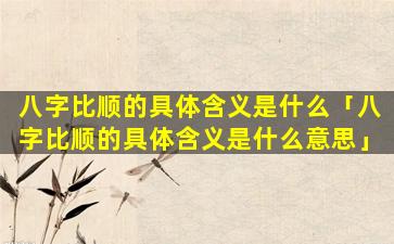 八字比顺是指八字命局 🐟 中 🌾 ,日柱的日支 🐬 和时柱的时支五行相生或相同。具体含义如下: