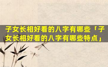 有利于子女长相好看的八字 🦁 特 🦄 征: