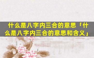 内三合内三合是指日支与月支、时支形成的 🐎 三合关系。也就是说,如 🦋 、果日支月支、时支,中。存 🐝 在上述三合之一则称为内三合