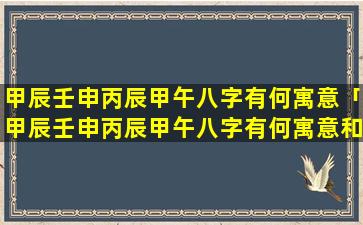 甲 💐 辰壬申丙辰甲午 🌺 八字的寓意: