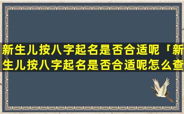 新生儿按 🌸 八字起名 🦁 是否 🌹 合适?