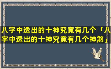 十神透干与否,指十神是否出现在八字的日干地支上透干的十神。称为 🐒 「明神煞」,而「藏于地支的 🌴 十神称 🦢 为暗神煞」。