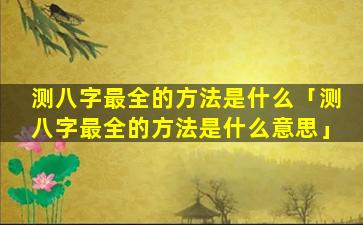 “测八字最全的方 🐕 法”指的是一种全面综合的方法,通过结合多个不同的测八字方法来分析一个人的命运。