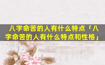 传统命理学认为,八,字命,苦是由于出生时八字天干地支 🐠 组合不吉利导致五行不平衡命局不顺。