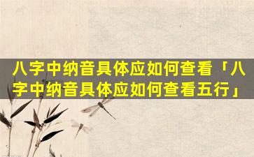 八字纳 🌷 音 🍁 的 🐡 查看方法