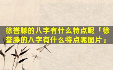 徐誉滕的 🐕 八字特点: