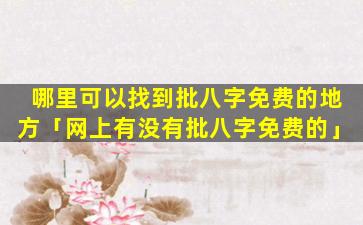 免费 🌾 批八字网站