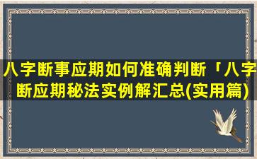八字断 🐠 事应期准确判 🦁 断方法