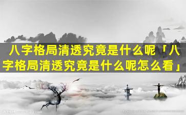 八字格局清透是指八字命格中不存在刑冲克害等不 🐡 良信息,且,五行协调气流顺畅。