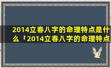 2014年立春节 ☘ 气 🐈 八字 🐼 :