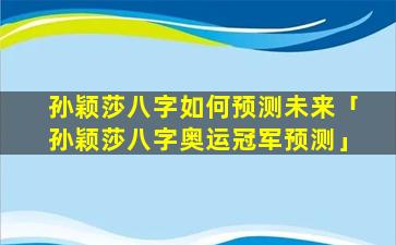 奥运预测:根据孙颖莎的八字 🌾 ,在 🐝 2024年巴黎奥运会期间: