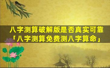 八 🌷 字测算破解版 🌿 的真实性和 🦈 可靠性