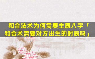 和合术是一种道教法术,用,于调和人际关系修补破裂的情感。它,需。要使用双方 ☘ 的生辰八字其中时辰是其中一项重要的信息