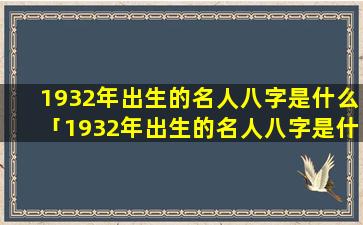 1932 年 💮 出 🐼 生的名 🌾 人八字命格: