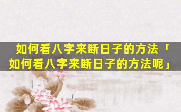 如何根 🐧 据八字断 🦢 日子 🐼 的方法