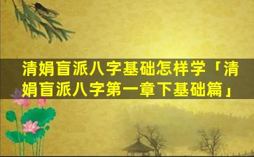 清娟盲派八字基 🐦 础学习方 🌻 法