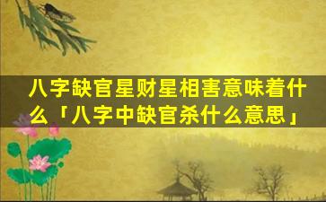 八字 🦟 缺官 🦢 星财星相害 🐞 的含义