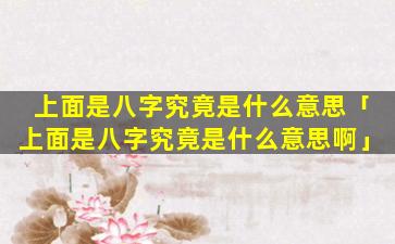 “上面是八字”这句话通 🐈 常是指某个人或事物生辰八字中的上半部分,即年柱和月 🌷 柱。