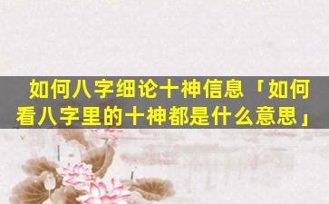 八字细 🐝 论十 🕊 神 🌴 信息