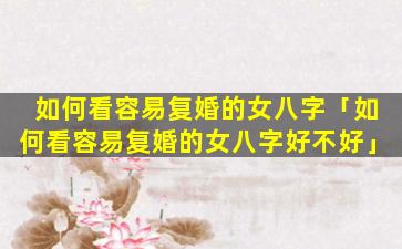 如何 🌷 判断 🦈 女八 🐼 字容易复婚?