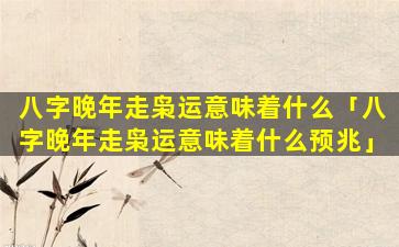 八字 🐘 晚年走枭 🦊 运的可能预兆
