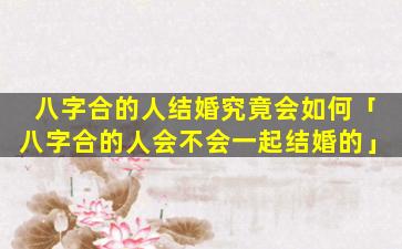 八字 🐛 合的人结婚 🌾 后的表 🦋 现