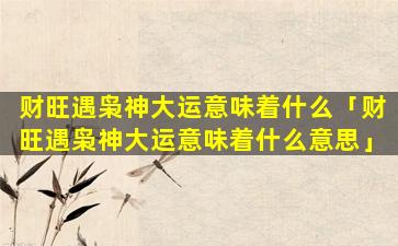 财旺遇枭神 🐺 大运 🐅 的 🦅 含义