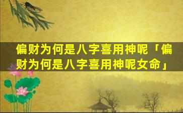 八字命理中,“偏财”为“十”神,之一代表钱财 💮 、投、资横财 🌴 等。对,于,女命来说偏财作为喜用神有以 🌷 下几个原因: