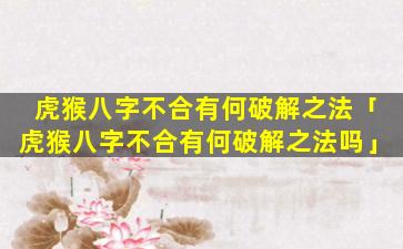 根据 🕊 传统的 🦅 中国民间说法 🐧 ,虎,和猴的八字不合具体表现为: