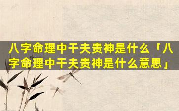 在八 🍀 字命理中 🐛 ,"干"夫,贵神 🐟 是一种特殊的命格指的是:
