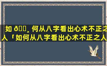 温馨提示:八字看心术不正只是一个参考不,能绝对断论。需要结合八字的整体格局、生、辰八字,五 🐕 。行流通等 🦁 具体情况综合分析方可得出准确的结论
