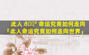 影响个人 🐟 命运走向世界的因 🐠 素 🦅