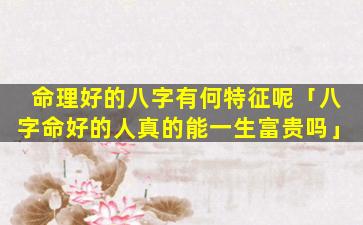 命 🌿 理好的八字特征: