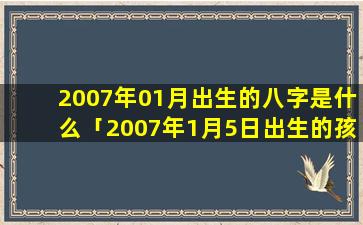 命理:2007年1月5日出生 🐡 的孩子为猪年 🐵 戊戌月丙戌 🦍 日,五行属“火土”。
