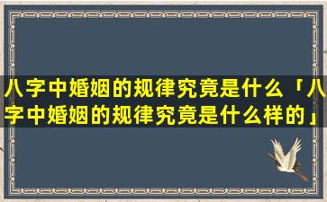 八字婚姻规律 🐧 的 🐼 解 🐞 读