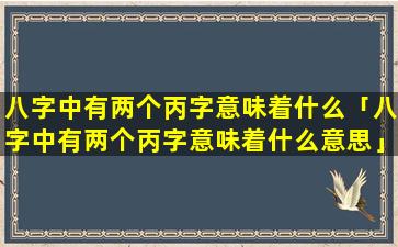 综述八字中 🌺 有两个丙字总体来说代表积极、事、业运旺桃 ☘ 花旺盛等含义。但、具体。吉凶需要结合八 🌺 字整体格局身强弱以及其他十神的搭配来综合判断