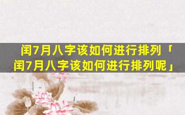 闰7月 🐧 八字排 🦉 列 💐 规则