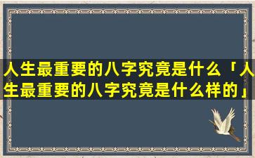 人生最重 🐬 要的八字
