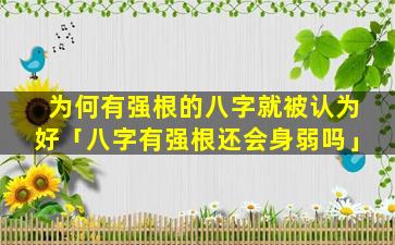 “强根”是指日主八字中 🌵 与日 🌻 主同五行或生扶日主的五行,如,果八字中有强根一般情况下日主不会身弱。但是,在,某,些特殊情况下即使八字中有强根日主也会出现身弱: