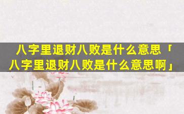 “八字退财八败”指的是一个人的八字 🕊 中缺少财星 🐘 或财星被克制,导 🐶 致其无法聚财、理财,能、力差容易破财败运。具体表现如下: