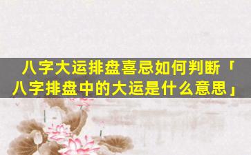 八字大运排 🐕 盘 🦋 喜忌判断方法