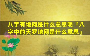 天罗地网是中国传统命理学中的术语,用,于描述八字中特定组合被 🌻 认为会对一个人的运势造成不良影响。