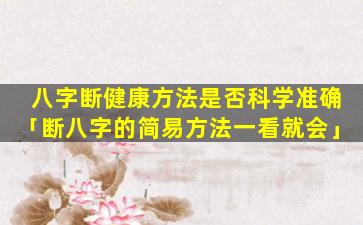 八字断健康方法是一种基于中国传统命理学(也称为生辰八 🐅 字)的健康诊断和预测方法。它。通过分析个人的出生日期和时间来推算其健康状况和潜在疾病