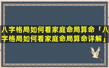 注意事項:八字格局看家庭命局仅供参考,不能 🐋 完全决 🦄 定家庭运势。