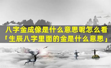 八字金成像是一种命理学中的术 🌳 语,指一,个人的八字中日主日(干)为金,且,身强且八字中没有财星。