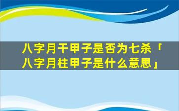 因此 🐼 ,“月柱甲申七杀”的含义如下 🦍 :