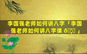 李国强老师八字 🌳 课讲 🌷 课 💐 风格