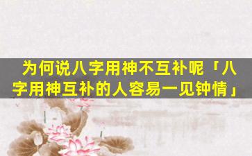 八字 🌺 学 🕷 是一种基于出生时间和阴阳五行理论的命理学,用神互补只是八字分析中的一个方面。它。不能解释一见钟情这种复杂而主观的情感现象