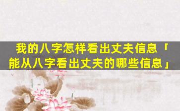 从 🐞 月柱 🦅 看丈 🐝 夫信息