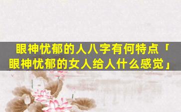 仅凭眼神忧郁 🕊 并不能准确判断八字特点。